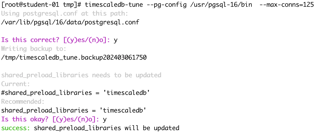 timescaledb-tune --pg-config /usr/pgsql-16/bin --max-conns=125
