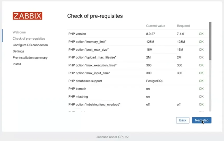 Tarayıcıda Zabbix’in çalıştığı hedef URL’yi açın. Örneğin, http://192.168.3.99/zabbixilk kurulum sihirbazının sizi karşılayacağı yer.