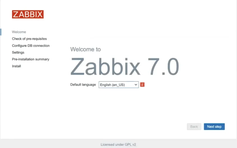 Tarayıcıda Zabbix’in çalıştığı hedef URL’yi açın. Örneğin, http://192.168.3.99/zabbixilk kurulum sihirbazının sizi karşılayacağı yer.