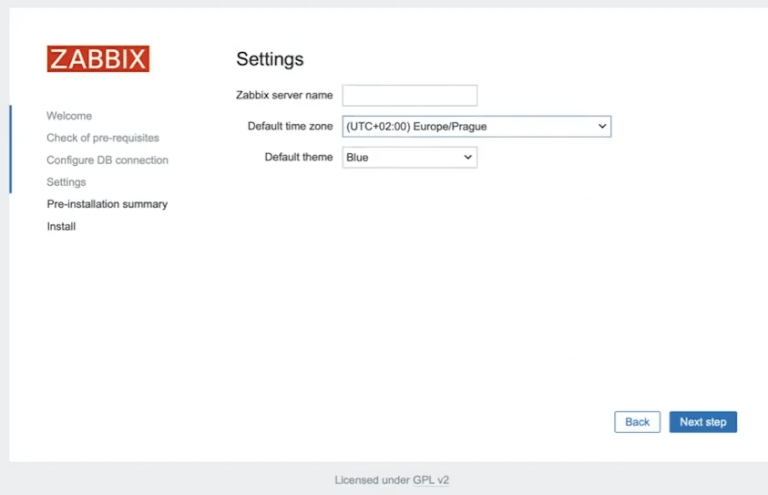 Temel ayarların bulunduğu bu sayfada sunucu adını, saat dilimini girin ve Next step yapılandırma özetine devam etmek için tıklayın.
